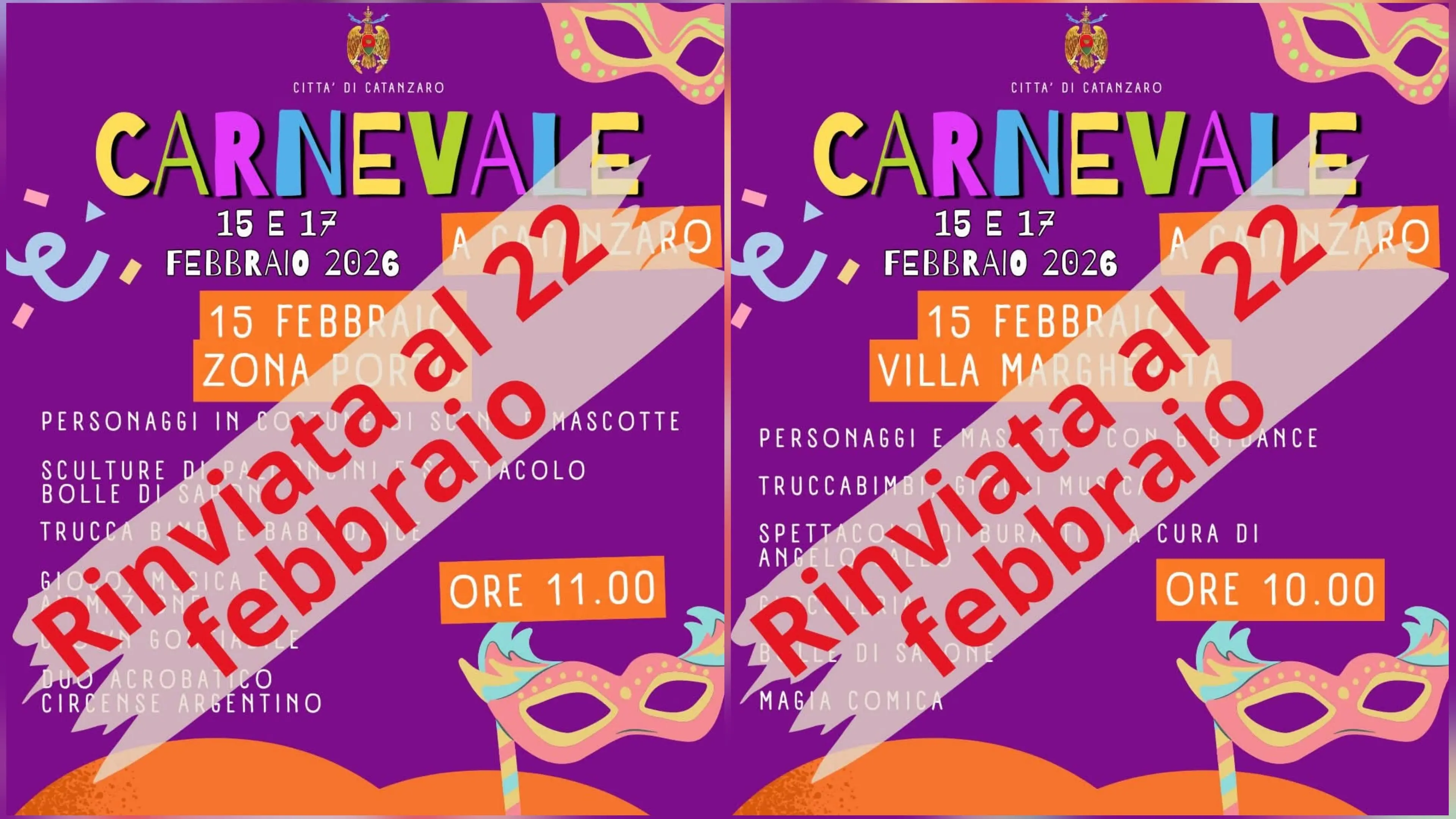 Per garantire la sicurezza dei partecipanti e la riuscita delle sfilate, gli eventi inizialmente fissati per questa domenica, 15 febbraio, sono stati ufficialmente posticipati
