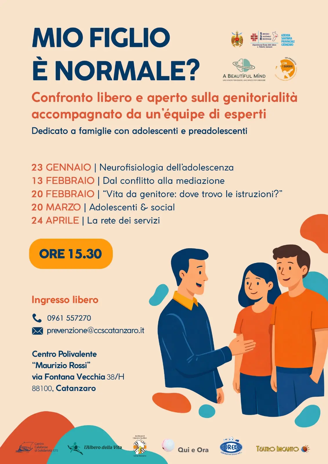 Il ciclo di incontri sulla genitorialità rappresenta una delle azioni centrali del progetto A Beautiful Mind, che affianca agli interventi rivolti a bambini e adolescenti un lavoro strutturato di supporto alle famiglie, nella convinzione che il benessere dei più giovani passi anche dalla crescita consapevole degli adulti di riferimento. Gli incontri si svolgono presso il Centro Polivalente “Maurizio Rossi”, in via Fontana Vecchia a Catanzaro, a partire dalle ore 15. La partecipazione è gratuita e libera.