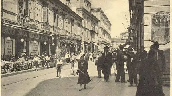 La foto storica di Corso Vittorio Emanuele risale al 1930. Non c’era bisogno di istituirla l’isola pedonale a Catanzaro perchè di auto ne circolavano raramente.