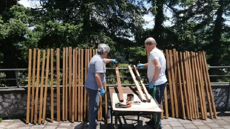 L’idea era maturata in occasione della recita del Santo Rosario proseguita per tutto il mese di maggio e si sarebbe dovuta concretizzare proprio con la conclusione di quest’ultimo, chiuso con la celebrazione della S. Messa all’aperto. I tempi sono stati leggermente più lunghi, ma la determinazione dei promotori ha avuto la meglio. Così, con l’aiuto di alcuni volontari, è stato possibile portare a termine l’opera di restauro, sostituendo le vecchie doghe di legno, ormai fatiscenti, e montare le nuove e solide, sulle strutture in ferro.