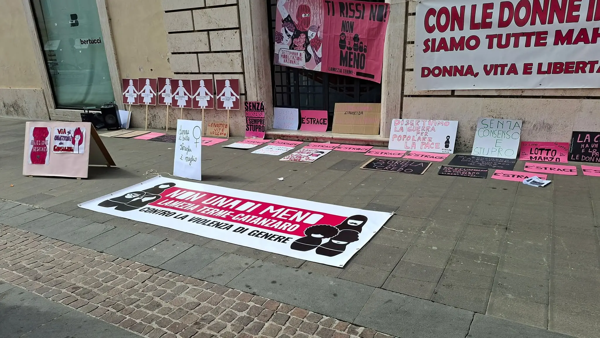 In mattinata presidio all'isola pedonale cittadina di corso Nicotera e, nel pomeriggio, proiezione al Chiostro di San Domenico del film "Il matrimonio di Rosa", commedia spagnola. «Le giornate di mobilitazione - hanno dichiarato le organizzatrici - intendono denunciare le politiche del governo in tema di violenza di genere, discriminazioni economiche e precarietà».