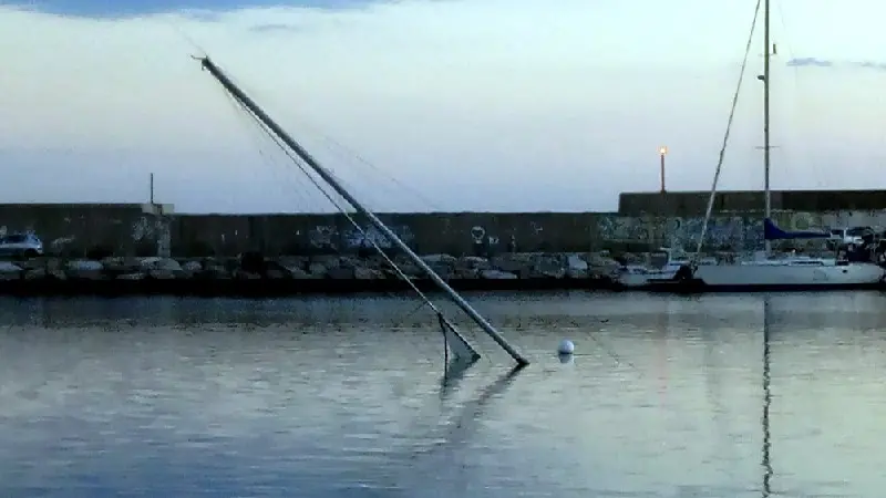 La foto ritrae la vela rimasta semi affondata nel porto (…) di Catanzaro.