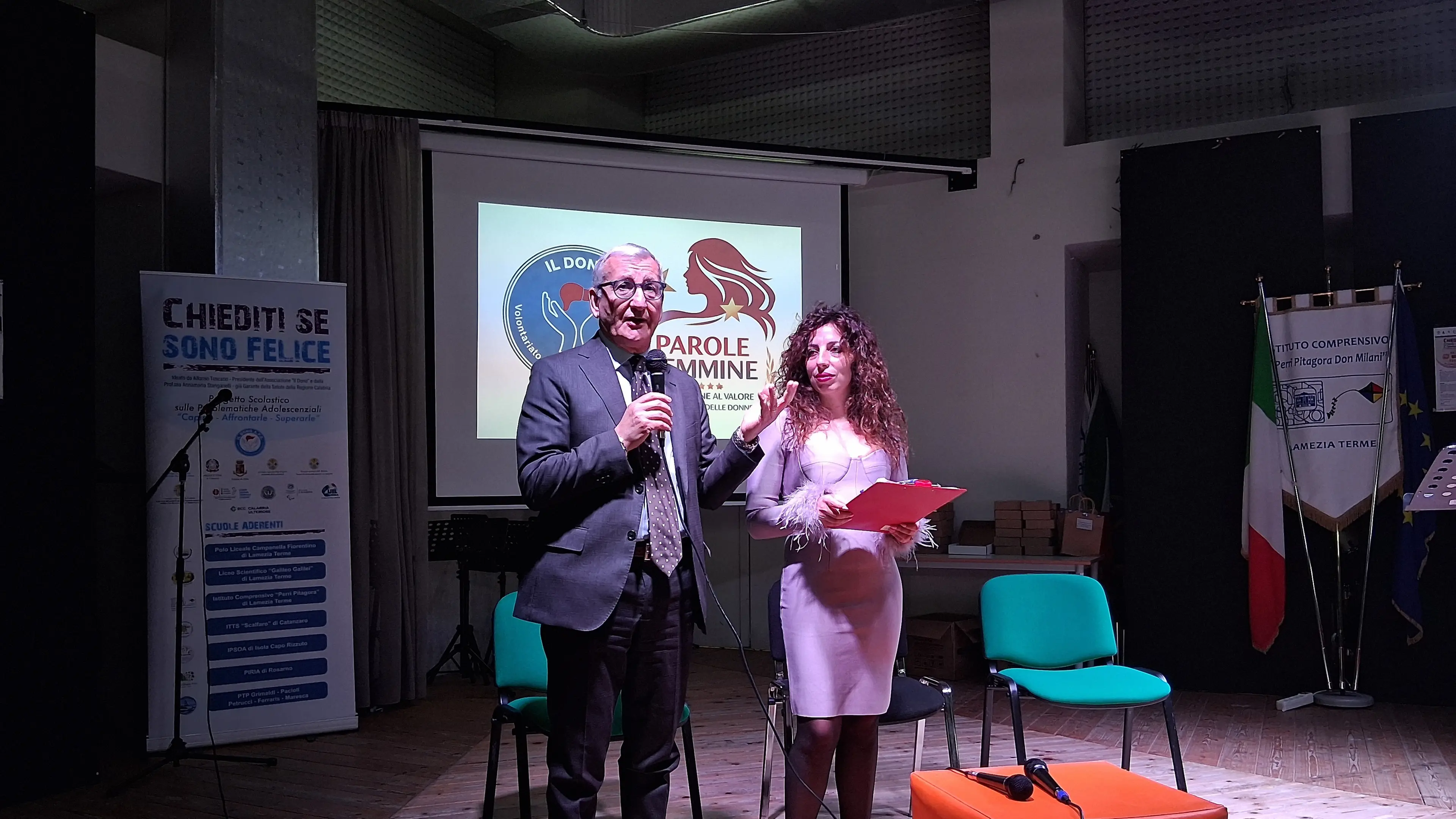 L’Auditorium dell’Istituto Comprensivo "Perri - Pitagora - Don Milani" di Lamezia Terme è diventato il palcoscenico di un profondo momento di riflessione collettiva con l’evento "Parole femmine". L’iniziativa si colloca all’interno del più ampio percorso progettuale "Chiediti se sono felice", nato dalla collaborazione tra l’attrice Annalisa Insardà, il presidente dell’associazione "Il Dono" Alfonso Toscano e la professoressa Annamaria Stanganelli, già garante della salute della regione Calabria. L’obiettivo dell’incontro è stato quello di utilizzare la potenza del linguaggio e della testimonianza per sensibilizzare l’opinione pubblica su temi urgenti quali l'impegno civile e la capacità di rinascita dopo eventi traumatici.