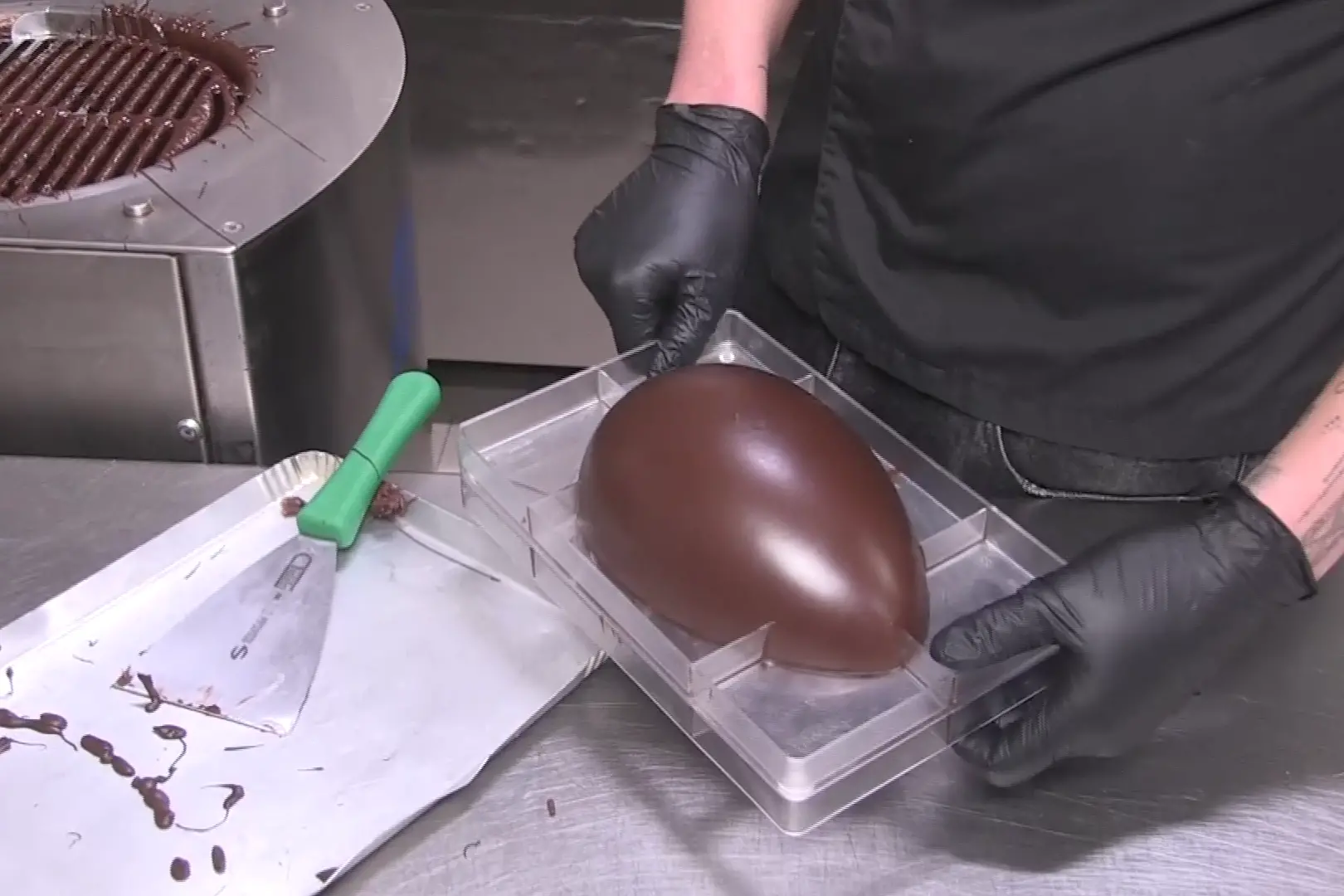 «La sorpresa viene inserita in una metà, viene sovrapposta l'altra metà dell'uovo e si attende che le due metà si uniscano tra di loro e si solidifichino. L'uovo viene tolto dalla forma ed è pronto».