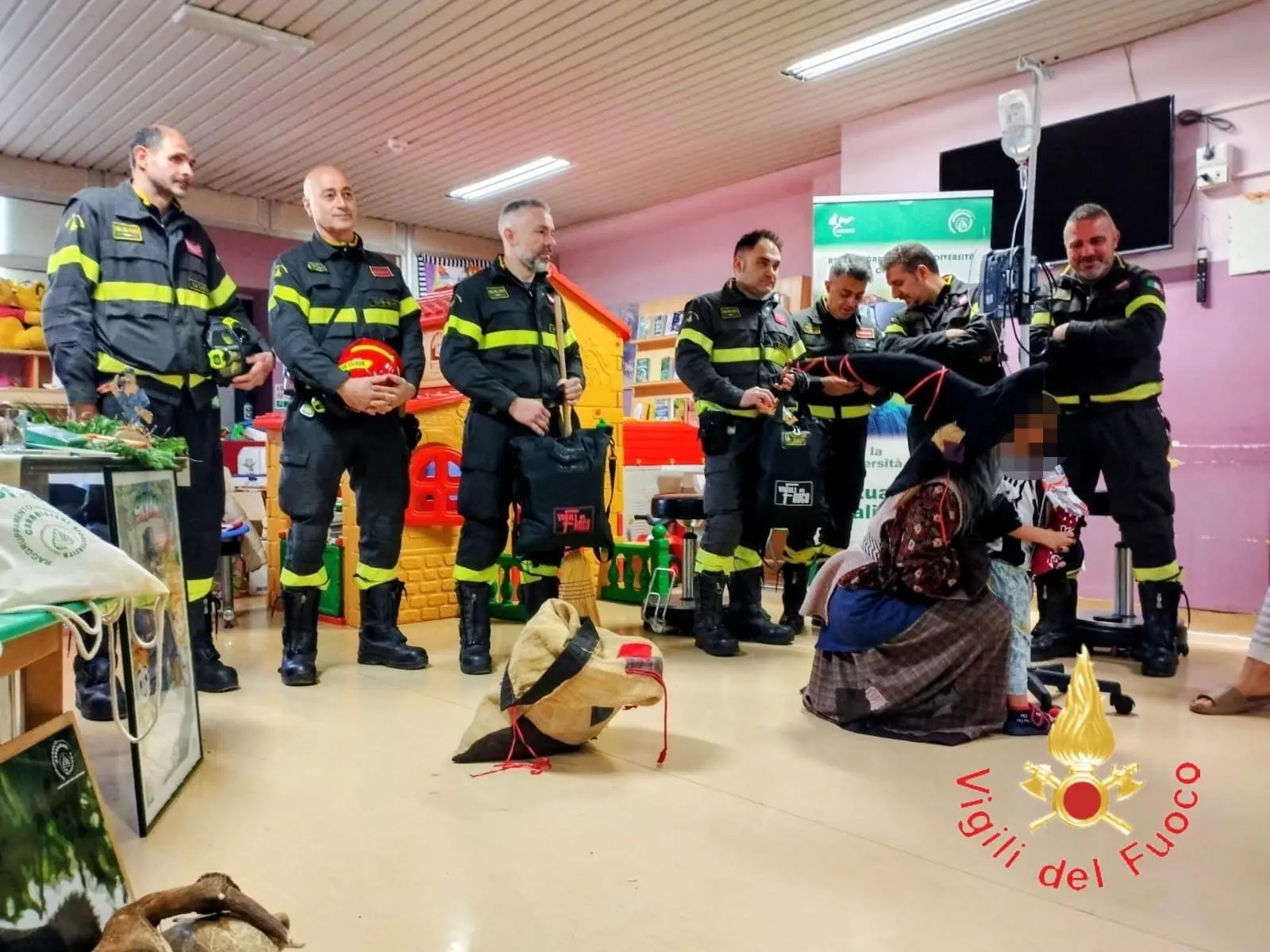 Anche quest’anno si è infatti rinnovata la tradizione della Befana dei Vigili del Fuoco, che ha fatto visita ai pazienti dell’Ospedale “Giovanni Paolo II” di Lamezia Terme. La Befana speciale dei Vigili del Fuoco del Comando di Catanzaro, distaccamento di Lamezia Terme, è giunta in modo spettacolare a bordo dell’autoscala, raggiungendo il piano dell’ospedale e facendo il suo ingresso dalla finestra del reparto di Pediatria, tra lo stupore e l’entusiasmo dei bambini, dei loro genitori e del personale sanitario.