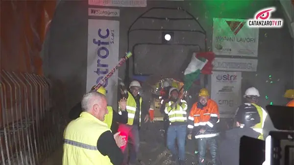 Alle 10 e qualche minuto i colpi di benna hanno rotto l’ultimo diaframma di cemento e di fatto completato la creazione della galleria naturale più impegnativa della costruenda metropolitana di Catanzaro.