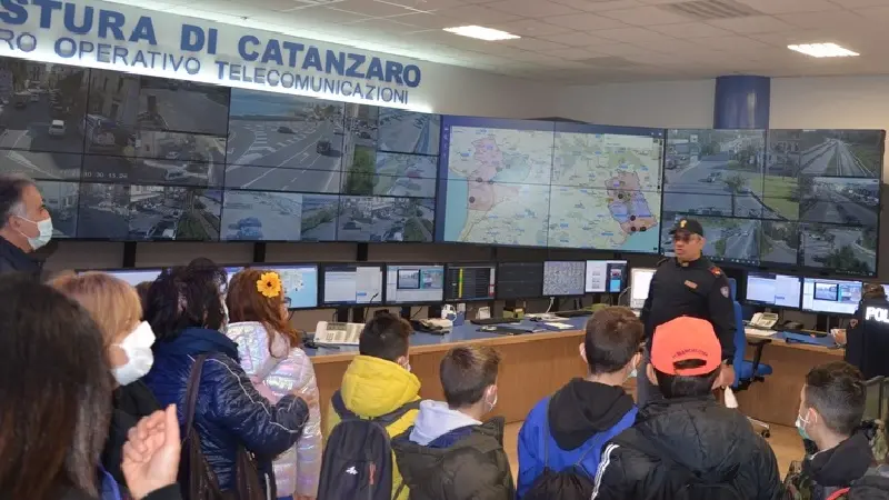 Tante le domande e le curiosità degli alunni, entusiasti di poter entrare nella Centrale Operativa del 113, e vedere dal vivo l’operatività: la gestione di una chiamata di soccorso, il coordinamento delle pattuglie della squadra Volante sul territorio, i nuovi sistemi tecnologici, i grandi schermi di videosorveglianza.