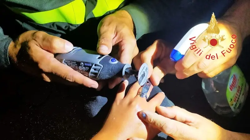 I vigili, coadiuvati dal personale medico del pronto soccorso, utilizzando un piccolo flex ad alta precisione, riuscivano a tagliare e rimuovere l’anello, senza che il giovane malcapitato subisse alcuna lesione