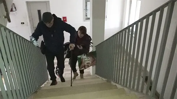 LA STORIA DI UN DISABILE STREMATO DALLA FATICA DI SALIRE E SCENDERE I 5 PIANI CHE SEPARANO LA SUA ABITAZIONE DALLA STRADA.