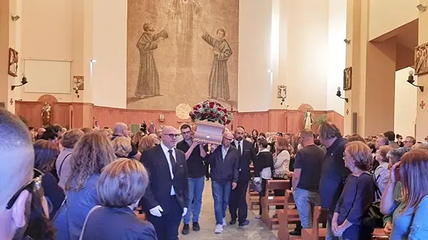 Ad officiare il rito padre Paolo Sergi, parroco del Sacro Cuore. “Da oggi in avanti continuerete a volergli bene, ad amarlo, perché la morte non spezza i vincoli di unione. Lo presentiamo al Signore, siamo qui nella nostra fede, perchè venendo in chiesa i cristiani cercano qualcuno. E noi cerchiamo Gesù risorto oltre che a salutare il nostro fratello Piero. Lo preghiamo perché interceda con Dio affinchè accolga questo nostro fratello per il bene compiuto, l’amore che ha donato sulla terra ma anche con le sue fragilità. E gli chiediamo che conforti anche noi smarriti, chiamati a riscoprire il nostro essere cristiani, e la forza di esserlo. Perchè i cristiani seguono Cristo nel buio della notte, cioè la morte, fino alla luce della risurrezione eterna.