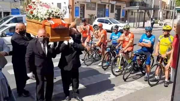 Il feretro è stato accompagnato da alcuni ciclisti con la storica maglietta rossa della società