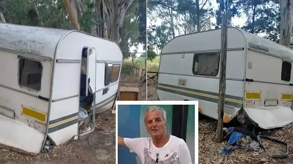 Nella pineta di Giovino, zona prospiciente lo scientifico Fermi, giacciono i resti di una vecchia roulotte. Era la ‘casa’ in cui in precedenza Salvatore trovava un minimo di riparo prima che qualche vandalo la rendesse completamente inservibile.