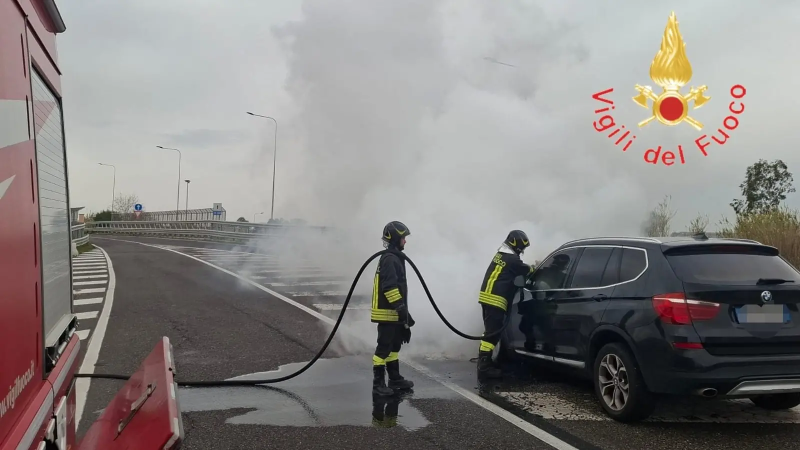 Il veicolo coinvolto, una BMW X3, mentre era in transito, per cause accidentali si incendiava. A bordo vi era la sola conducente che, accortasi tempestivamente dell’anomalia, riusciva ad accostare il mezzo e ad abbandonarlo prima che venisse completamente avvolto dalle fiamme.