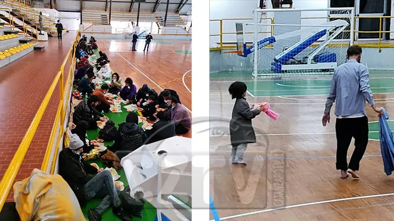Ora si trovano ospiti del palasport, la struttura che il comune ha messo a disposizione e dove passeranno la notte, assistiti dalla protezione civile e sotto lo sguardo vigile del personale di soccorso e di polizia.