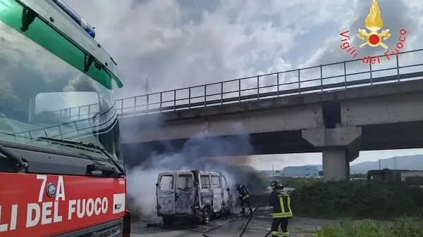 Un pulmino ha preso fuoco nei pressi della zona industriale ex Sir, sul Tirreno catanzarese.