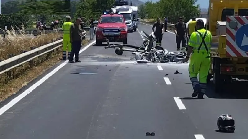 Grave il conducente della moto affidato al personale sanitario del Suem118 per le cure del caso e successivo trasporto presso struttura ospedaliera con elisoccorso. A seguito dell’impatto la motocicletta prendeva fuoco.