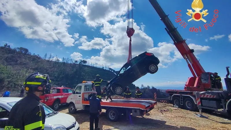 Al momento, con ausilio della Autogrù VVF giunta dalla sede centrale, si sta operando per il recupero e la messa in sicurezza della vettura.