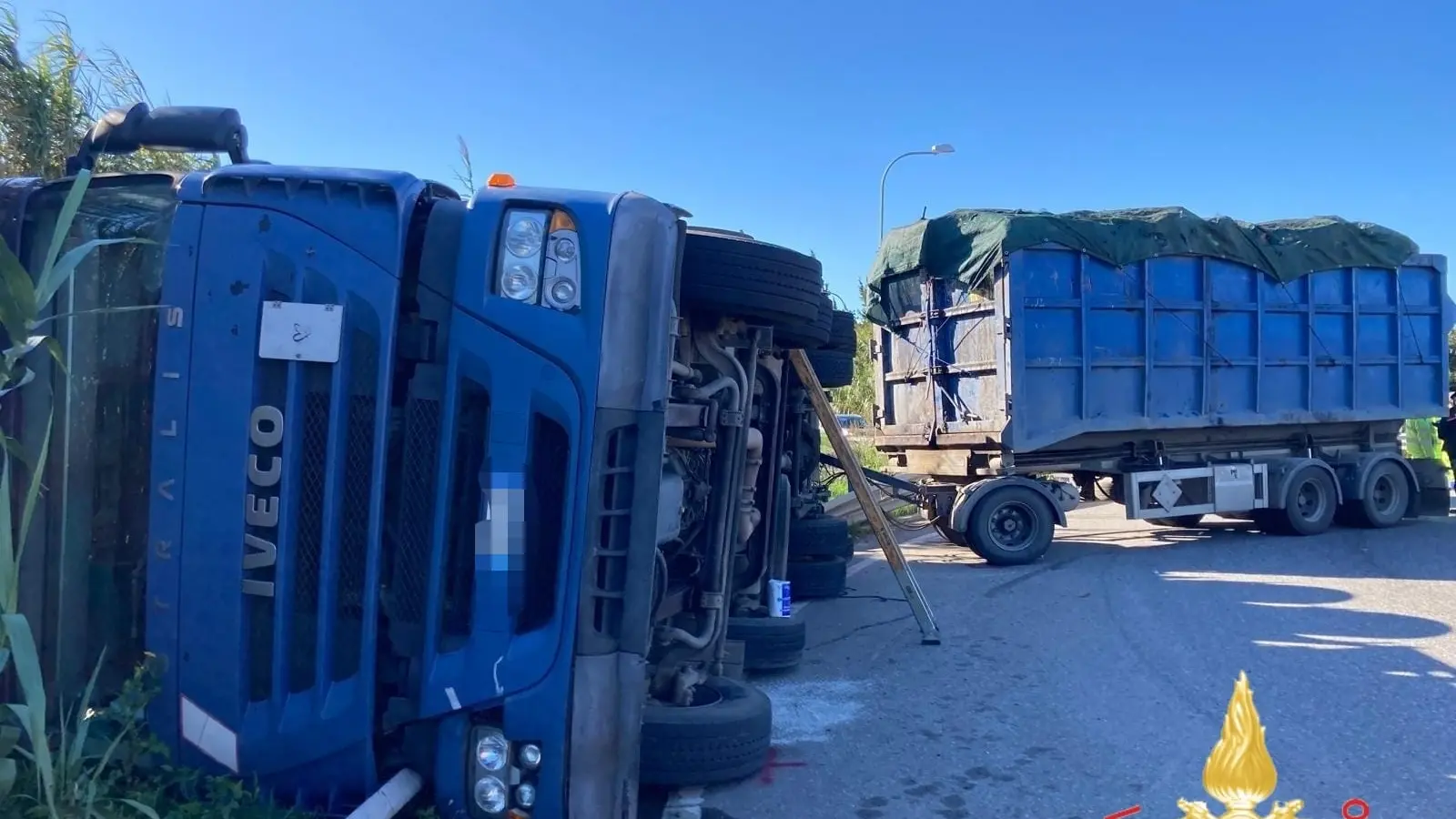 Il sinistro ha coinvolto un autotreno (motrice con rimorchio). Per cause in corso di accertamento, la motrice si è ribaltata su un fianco occupando parte della sede stradale. A bordo era presente il solo conducente, affidato al personale sanitario del Suem118 per le prime cure e successivamente trasferito in ospedale per ulteriori accertamenti.