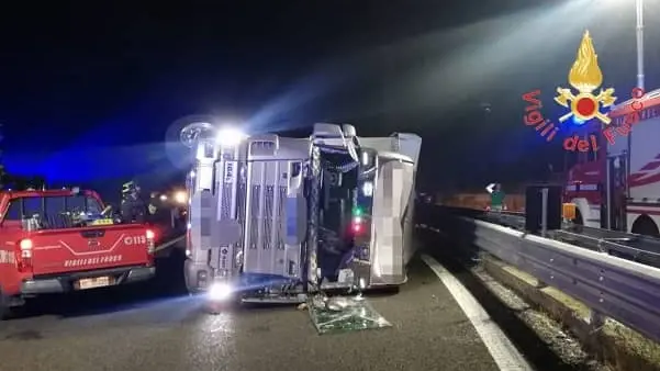 Un Tir di bestiame che trasportava mucche si è ribaltato questa sera sulla SS280, nei pressi dello svincolo di Germaneto/Catanzaro Lido.