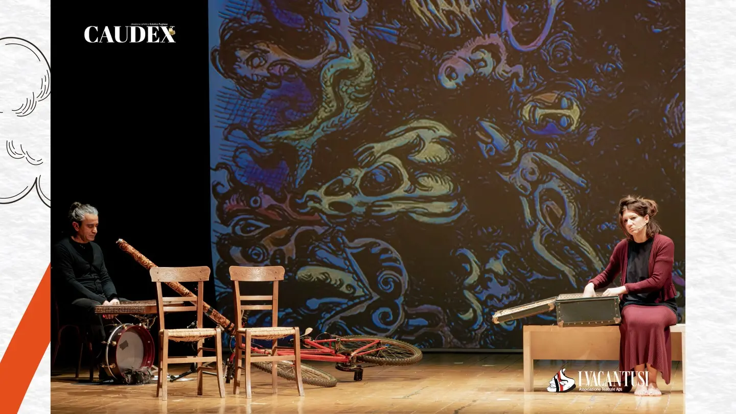 Le note di Fabio Tropea hanno dato voce a quel dolore che attraversa la vita di Lucia come un filo teso, trasformandolo in una vibrazione, in un suono ancestrale e suggestivo. Come da tradizione per Caudex, la serata non poteva che chiudersi con un rito di condivisione. Il buffet finale, tra “duci e salatu”, è stato il momento in cui le parole “si sono sciolte” in un contrasto di sapori che rispecchia esattamente la scrittura della Pirandello.