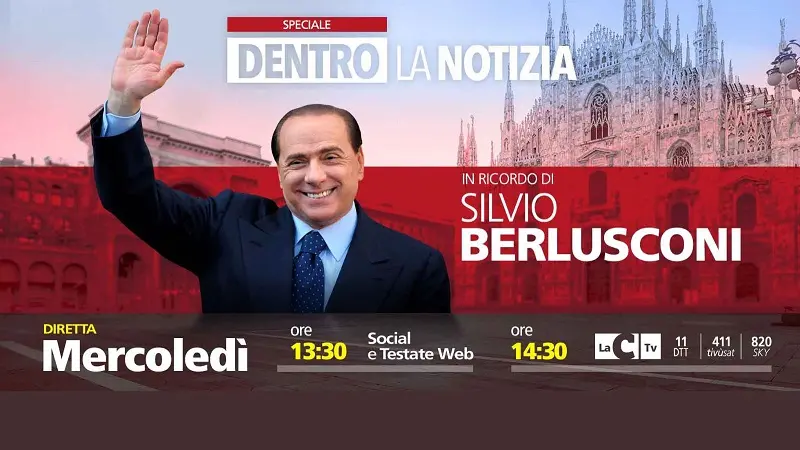 Lo speciale “In memoria di Silvio Berlusconi” potrà essere seguito sui canali social e sulle testate web a partire dalle ore 13. 30, su LaC Tv, dalle ore 14. 30. LaC Tv è visibile sul canale 11 del digitale terrestre, canale 411 di TivùSat e sul canale 820 di Sky. Sarà possibile vedere o rivedere la trasmissione anche in streaming su LaC Play, scaricando l’app per Android e iOs o raggiungendo il sito lacplay.it.