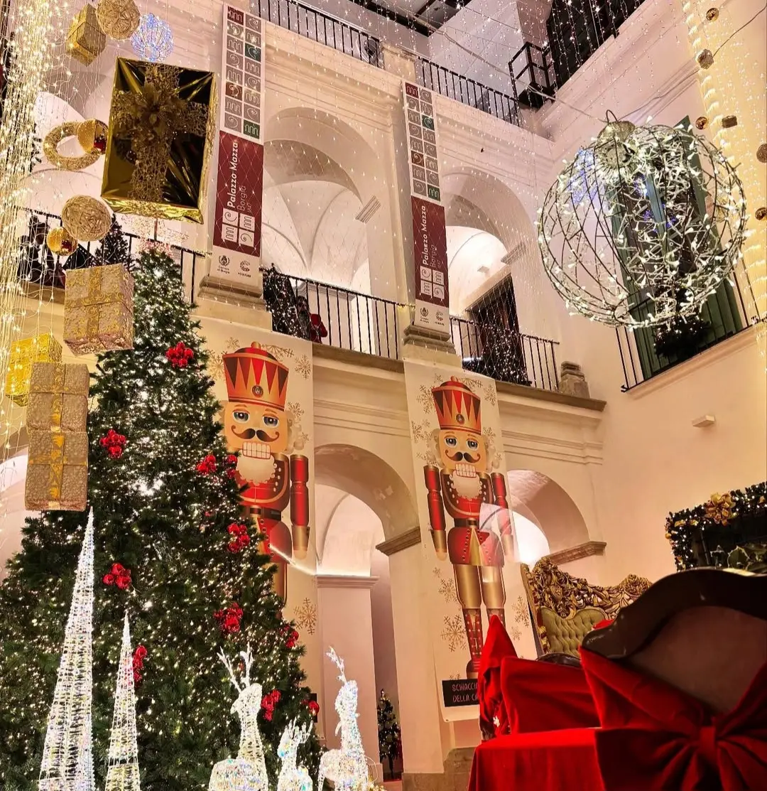 Il cuore pulsante dell'evento sarà, come di consueto, il maestoso Palazzo Mazza. Già splendida cornice storica, l'antico palazzo si prepara a una nuova, straordinaria metamorfosi: le sue sale si trasformeranno in un luogo sospeso nel tempo, avvolto in un'esplosione di luci scintillanti, addobbi sontuosi e una magica atmosfera natalizia, pronta ad accogliere ogni visitatore in un caldo abbraccio di meraviglia.