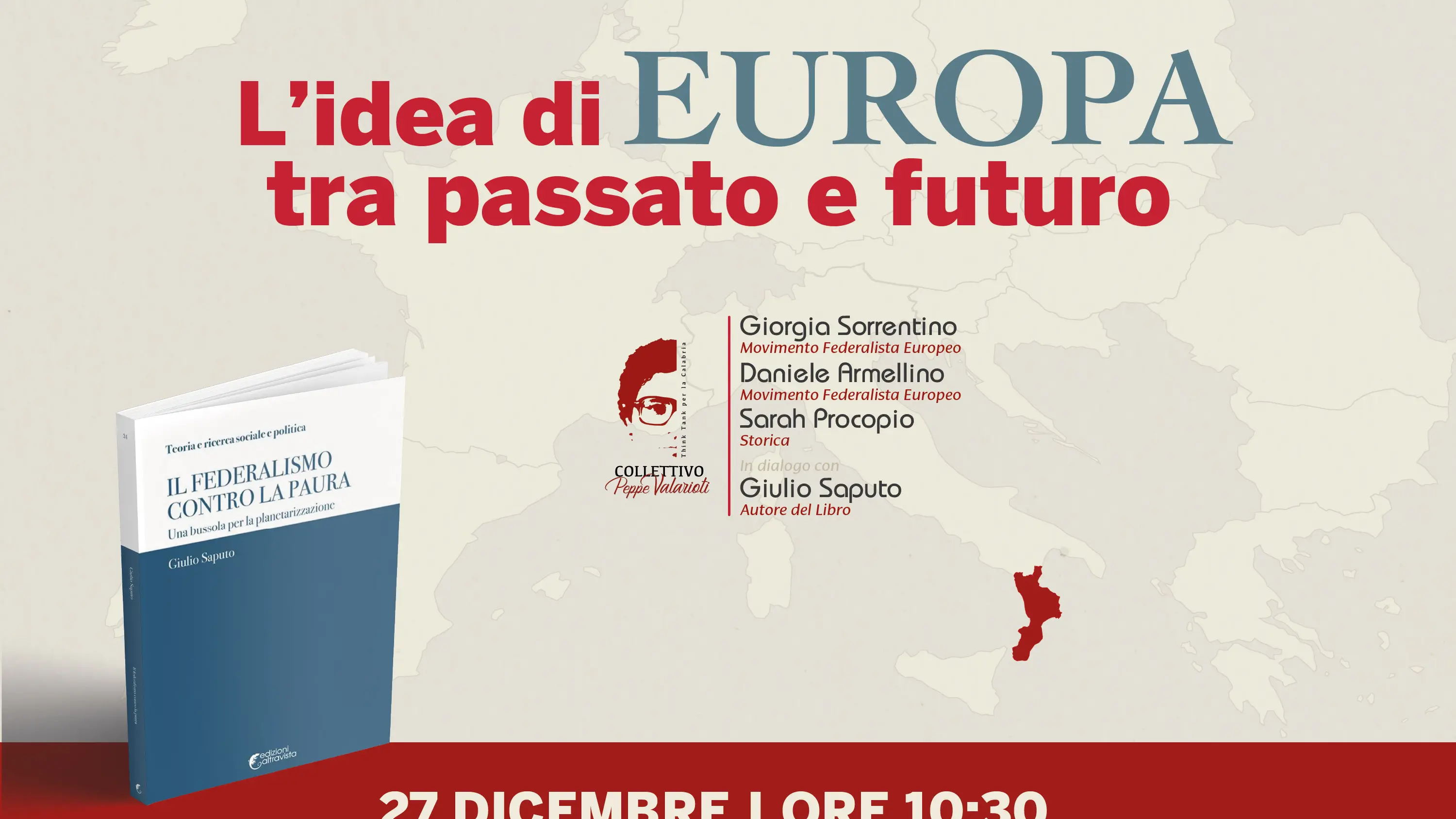 Catanzaro torna a essere luogo di riflessione politica e culturale, questa volta con un dibattito sul futuro dell’Europa. Domani, venerdì 27 dicembre, alle ore 10:30, nella Sala del Lucernario dell’Archivio Storico Comunale (Complesso Monumentale San Giovanni), il Think Tank Collettivo “Peppe Valarioti” darà vita all’iniziativa pubblica dal titolo “L’idea di Europa tra passato e futuro”, un incontro di approfondimento e dibattito a partire dal volume “Il federalismo contro la paura” di Giulio Saputo (Edizioni Altravista, 216 pp.).