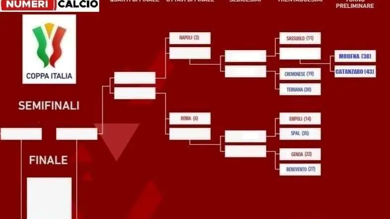 A questo parteciperà da seconda in campionato il Catanzaro che sarà in trasferta a Modena in partita secca che qualificherà alla seguente sfida nientemeno che col Sassuolo, ex squadra di Pietro Iemmello.