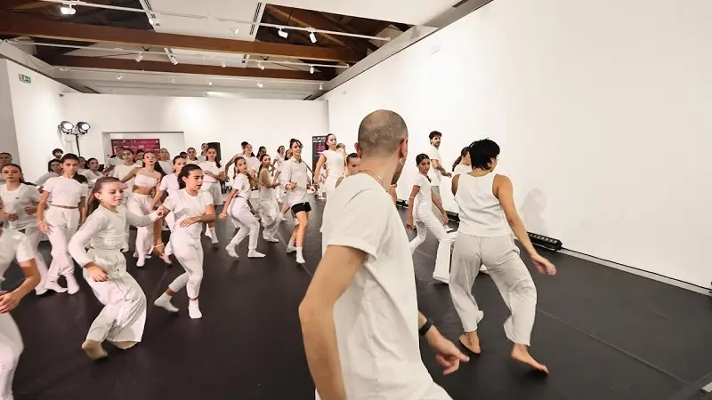 È questa la prima immagine della straordinaria giornata dedicata all’arte tersicorea che il XXI Festival d’autunno ha ideato per la prima volta in Calabria, iniziata proprio con lezione aperta di contemporaneo, prevista all’aperto in piazza Prefettura e poi spostata nelle accoglienti sale del Museo Marca a causa del maltempo. Guidati dal maestro Claudio Scalia, i danzatori, tutti vestiti di bianco, hanno partecipato a una lezione molto dinamica, d’insieme, unica per la nostra regione, che ha reso protagonisti tanti allievi provenienti dalle varie scuole per lo più cittadine a causa del maltempo – le prenotazioni erano arrivate da tutta la Calabria – animando in maniera inedita e travolgente le sale del Marca.