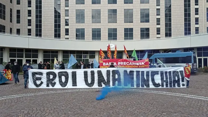 1500 i precari che attendono la stabilizzazione, al loro fianco al sit in anche i sindacati Usb e Nursing Up.