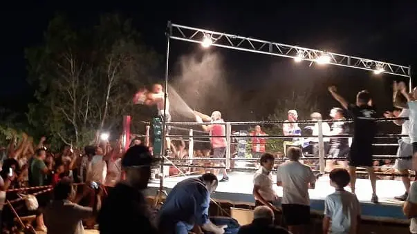 La serata pugilistica si è svolta su un ring all’aperto a Giovino, nei pressi il lido Valentino Beach Club, davanti ad alcune centinaia di spettatori.