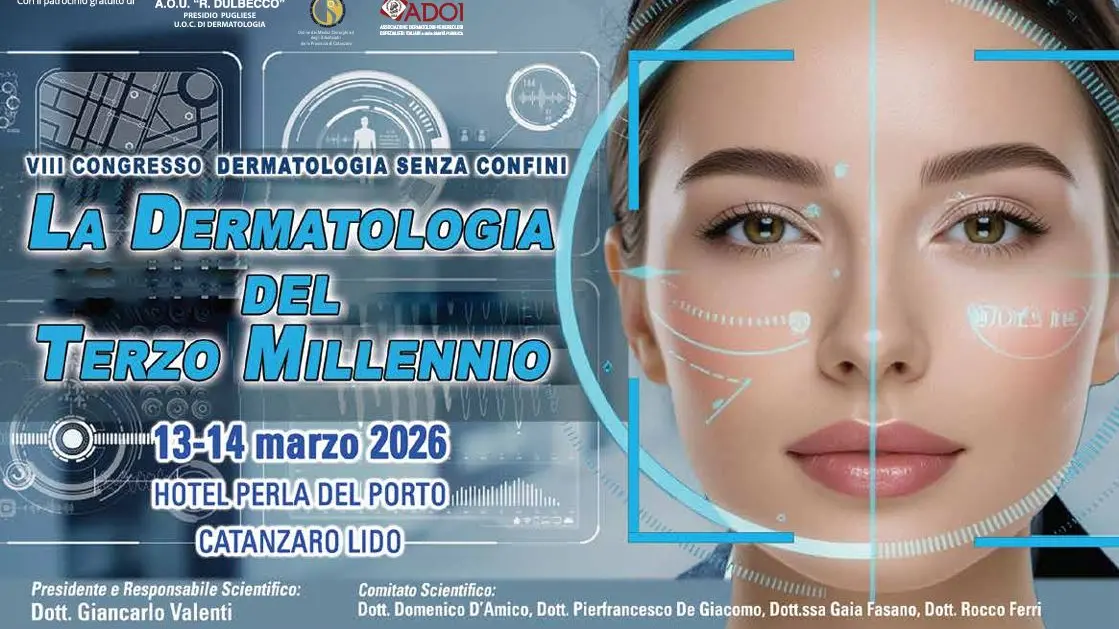La dermatologia del futuro, tra innovazione farmacologica, nuove tecnologie diagnostiche e terapie sempre più personalizzate. Sarà questo il cuore del VII Congresso “Dermatologia senza confini – La dermatologia del terzo millennio”, in programma il 13 e 14 marzo 2026 all’Hotel Perla del Porto di Catanzaro Lido, promosso dall’Unità Operativa Complessa di Dermatologia del presidio Pugliese dell’Azienda ospedaliero-universitaria “Renato Dulbecco”. Il congresso, che vedrà la partecipazione di specialisti provenienti dalla Calabria e da diverse realtà accademiche italiane, sarà presieduto dal Dottor Giancarlo Valenti, direttore della S.O.C. di Dermatologia, che ha voluto dedicare l’edizione di quest’anno a un tema particolarmente attuale: il profondo cambiamento che la disciplina sta vivendo negli ultimi anni.