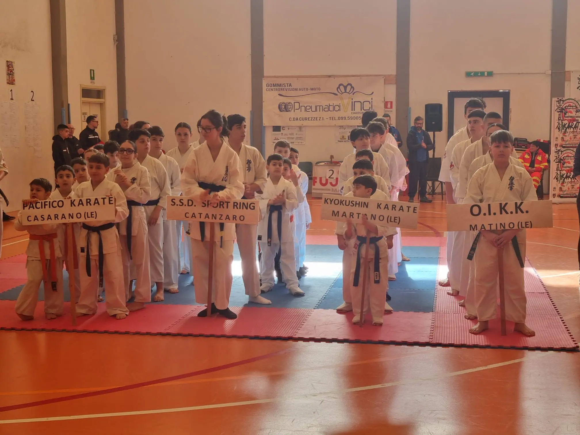 SAN GIORGIO IONICO (TA) – Si è concluso domenica 22 febbraio con un successo travolgente per i colori giallorossi il campionato di Kyokushinkai tenutosi a San Giorgio Ionico. L’evento, organizzato con la consueta maestria dallo Shihan Francesco Fina (Shinkyokushin), ha visto la SSD Sport Ring Catanzaro imporsi come assoluta protagonista, portando sul podio una nuova generazione di piccoli ma determinati guerrieri.