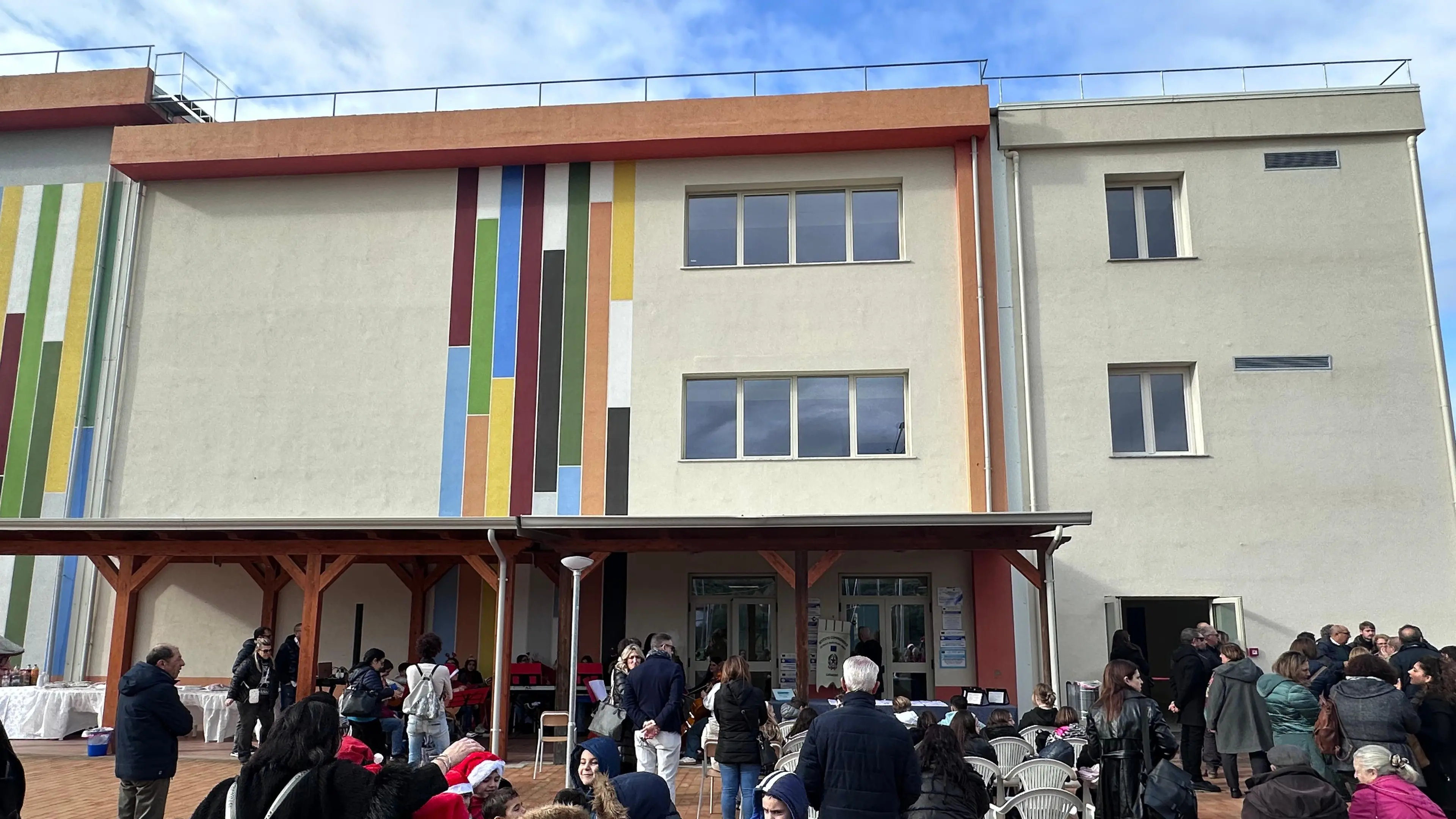 Dopo la benedizione dei locali e la visita al nuovo plesso, la cerimonia si è conclusa con il taglio del nastro del nuovo campetto sportivo, alla presenza del giovane calciatore del Catanzaro Mattia Liberali, che ha simbolicamente inaugurato lo spazio con il primo calcio al pallone.